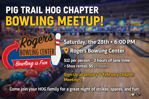 The Pig Trail HOG Chapter is swapping handlebars for bowling balls for a night of fun you won’t want to miss!