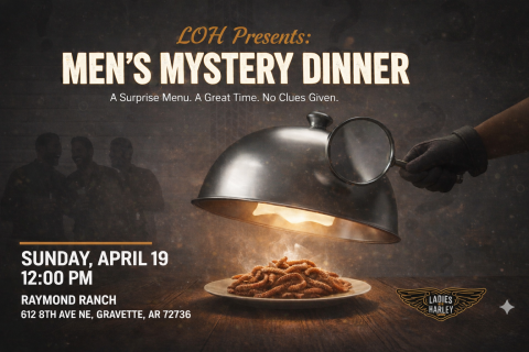 Join us for a fun and laid-back Menās Mystery Dinner hosted by the Ladies of Harley. Come hungry, come curious, and be ready to expect the unexpected.