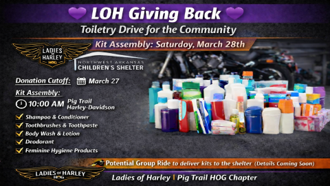 The Ladies of Harley (LOH) are collecting **toiletry donations for the NWA Children's Shelter, and we’d love your help!